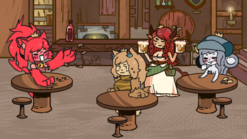 Party night in Faun's Tavern with Kobold, Human, Goblin + the new Cat, Dog, Mouse, and (well, yea) Faun Princess!
